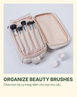 - Ngăn chứa: Ngăn mở rộng đáy túi với lớp PVC chống bụi, tiện lợi để đựng cọ hoặc đồ dùng khác.