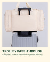 - Tiện ích: Túi mở rộng có khóa kéo để cài vali + móc cài khoá riêng