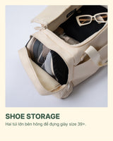 - Ngăn chứa: 2 túi ngoài đựng giày, chai nước hoặc vật dụng cần để riêng.